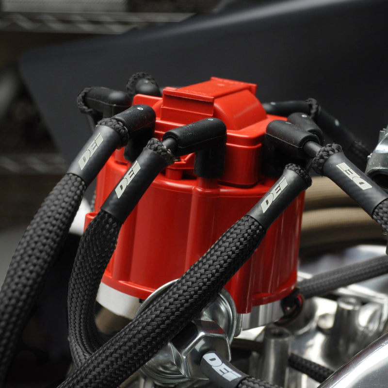 Black Titanium(TM) Protect-A-Sleeve solves the problem of burning, cracking plug wires, lines & hoses from engine & exhaust heat, now in a stylish black finish. DEI's Black Titanium Protect-A-Sleeve with LR Technology(TM) offers the best possible line sleeve protection on the market. Developed specifically for any application where extreme high heat is present, these Titanium sleeves will protect wires, lines and cables when exposed up to 1800°F direct heat/2500°F radiant. Developed with DEI's proprietary LR Technology, these high temperature rated sleeves provide superior thermal protection for street vehicles or race engines, protecting fuel, oil lines, spark plug and electrical wires from direct or under hood radiant heat. Water and heat resistant, they are also ideal for Powersports ATV/UTV, motorcycle, personal watercraft, snowmobiles, and marine use.