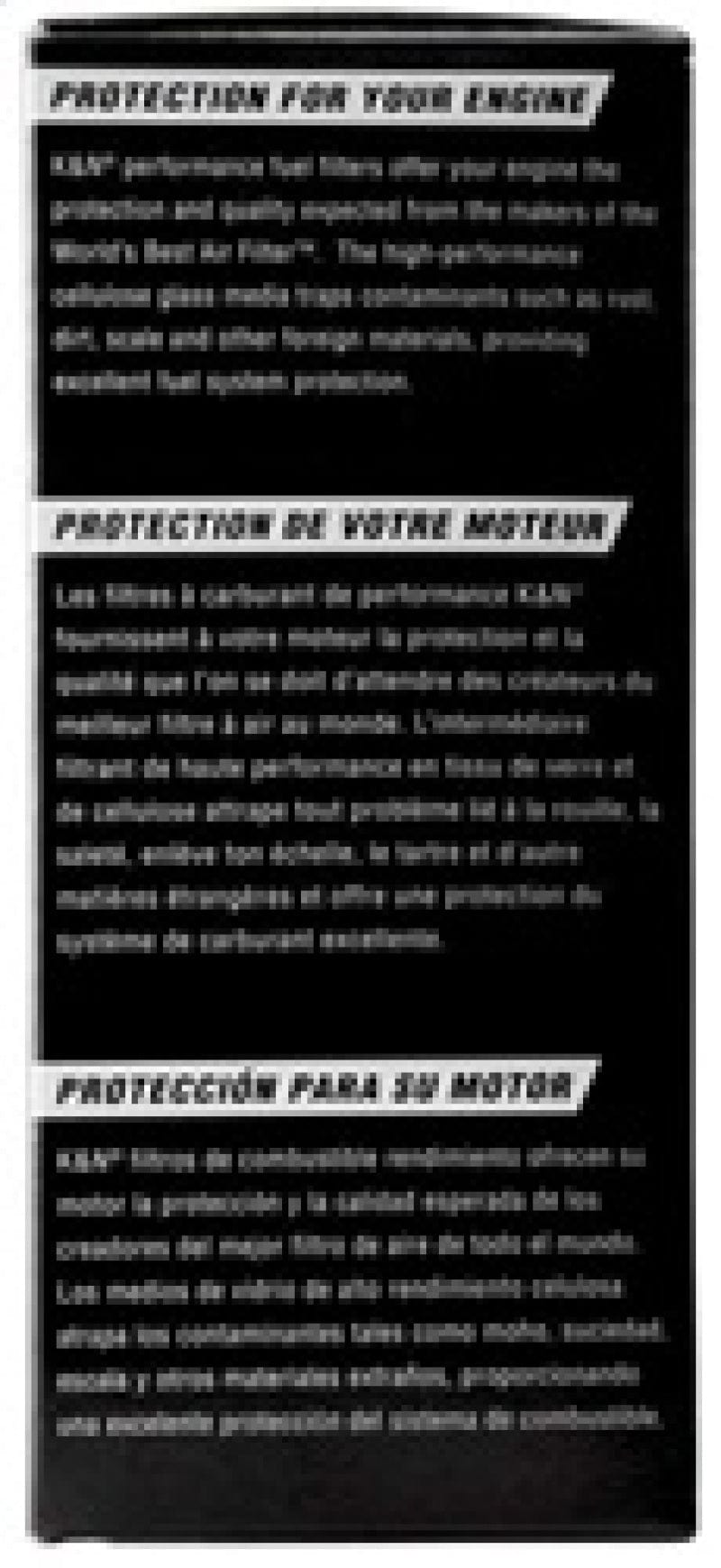 K&N Performance Fuel Filters are built for high flow rates and capacity while they provide outstanding filtration. They have a high strength carbon steel housing and a high performance rolled seam that exceeds OEM pressure requirements. Their high performance cellulose glass media traps contaminants such as rust, dirt, scale and other foreign materials.